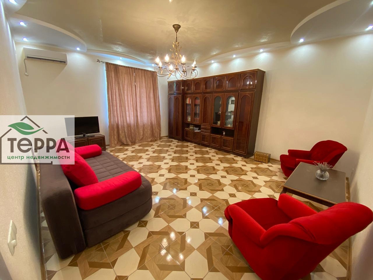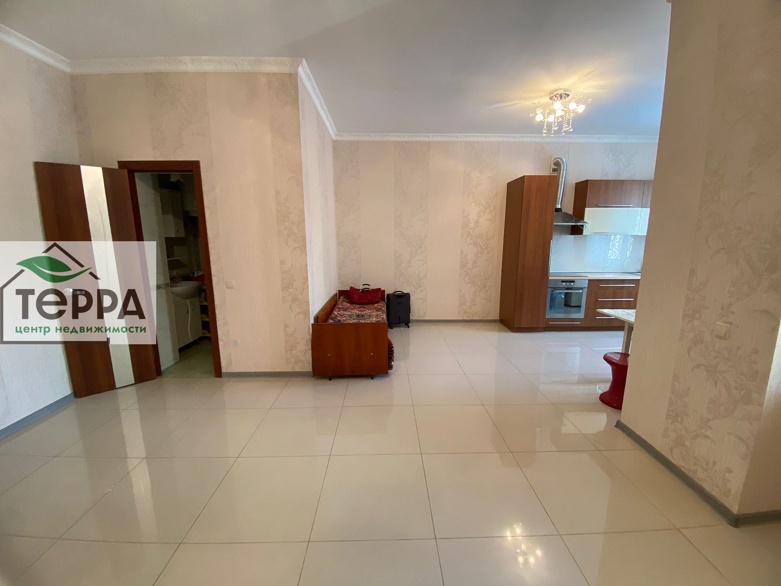 Общая площадь 61 м², 2 комнаты и сан узел. Теплый пол, сигнализация, кондиционер в изолированной комнате.