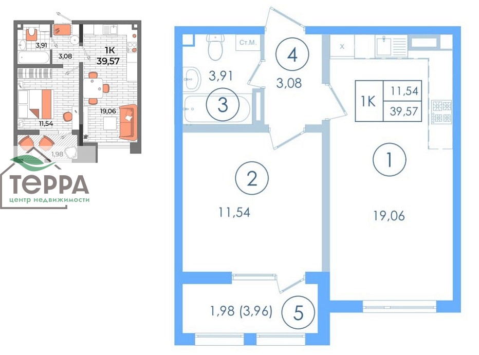 ◈ Большая лоджия – можно объединить с комнатой, увеличив жилое пространство.