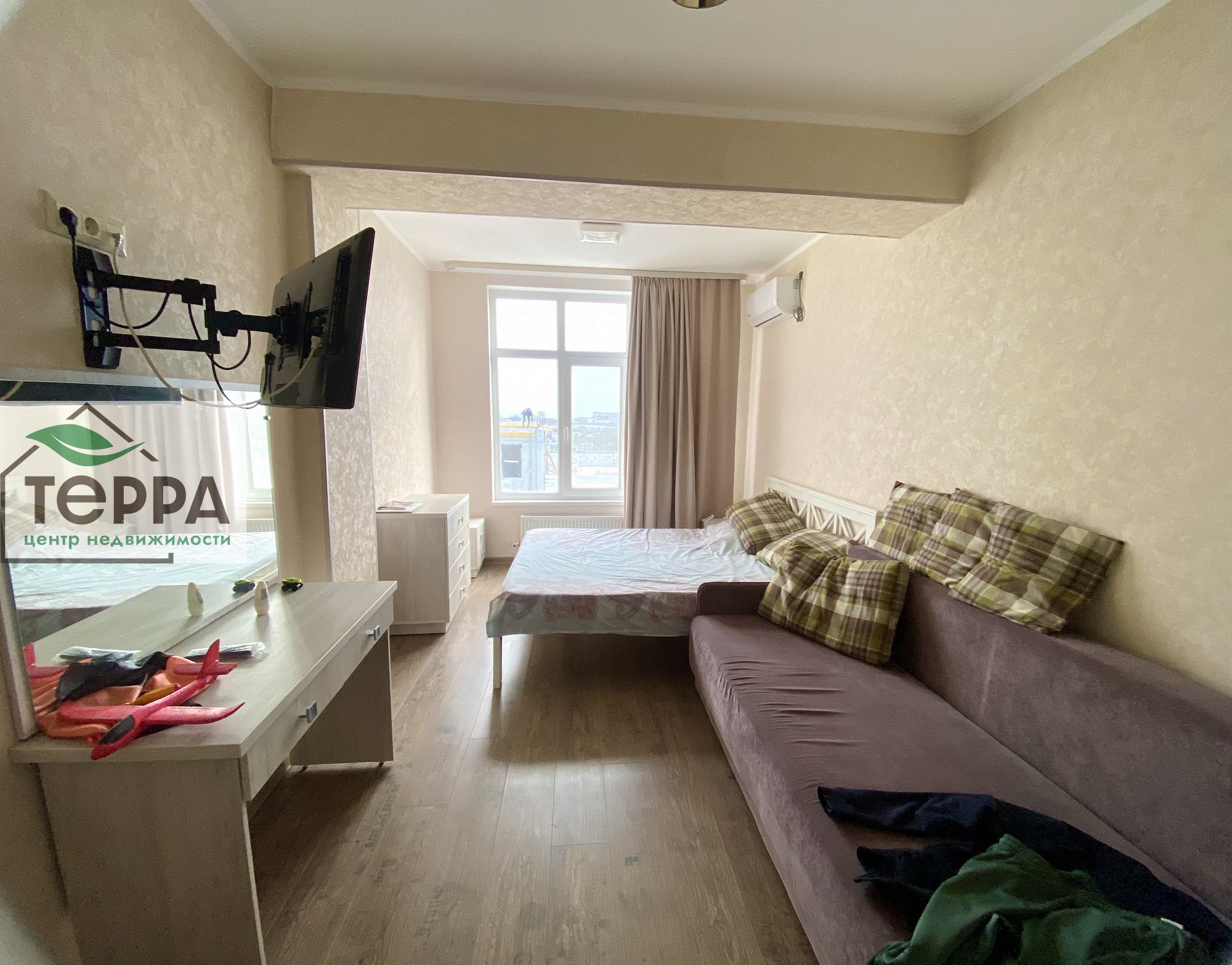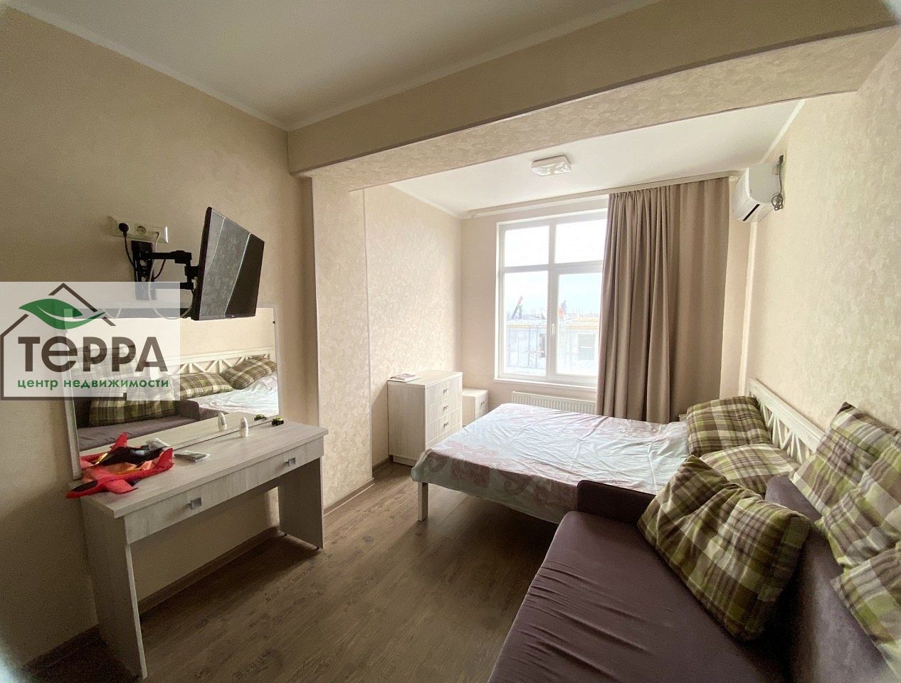 Вашему вниманию предлагается шикарная 1-к квартира общей площадью 37.7 м² (спальня 15 м², кухня 14 м², сан узел 6 м²) с видом на море!