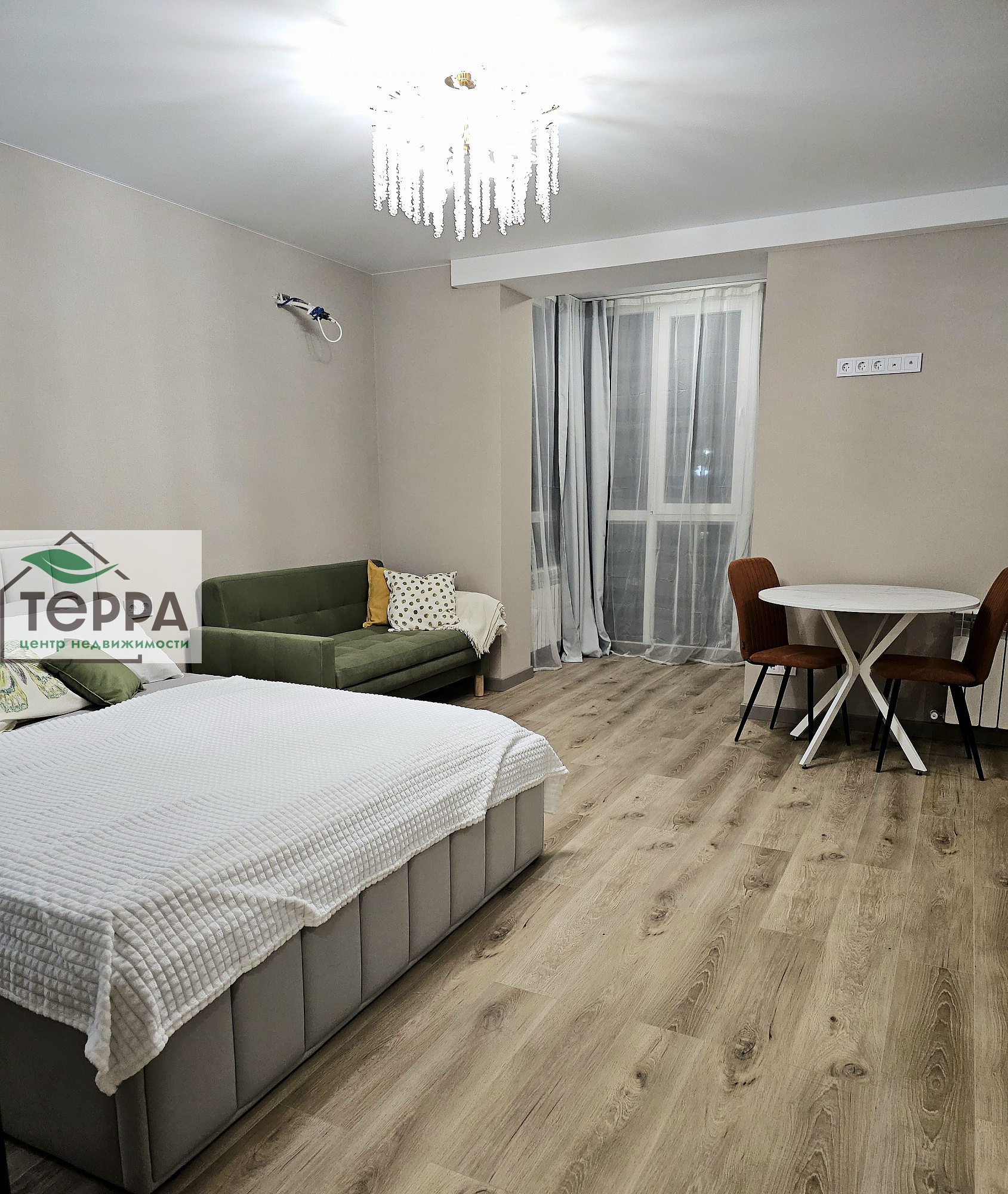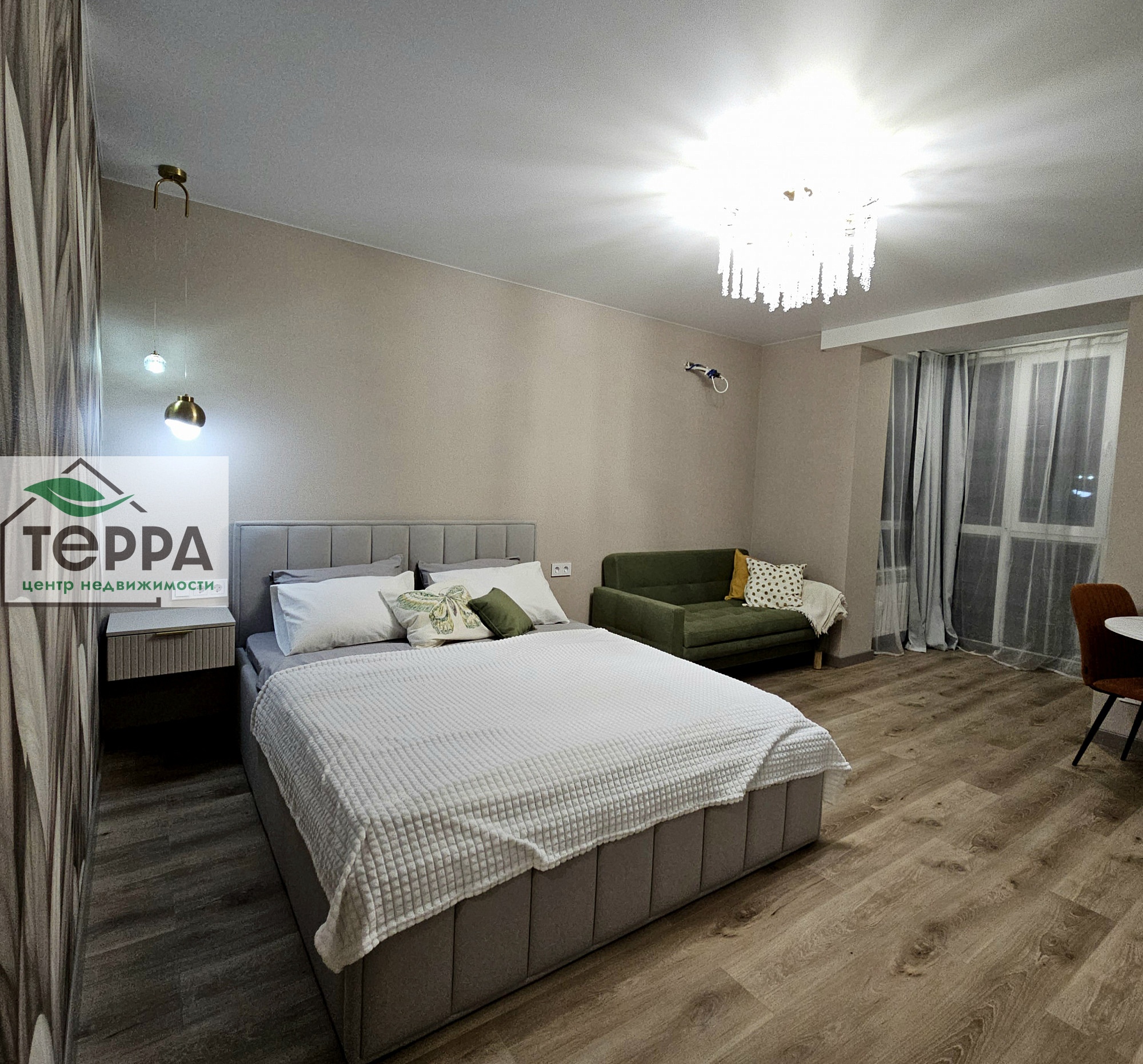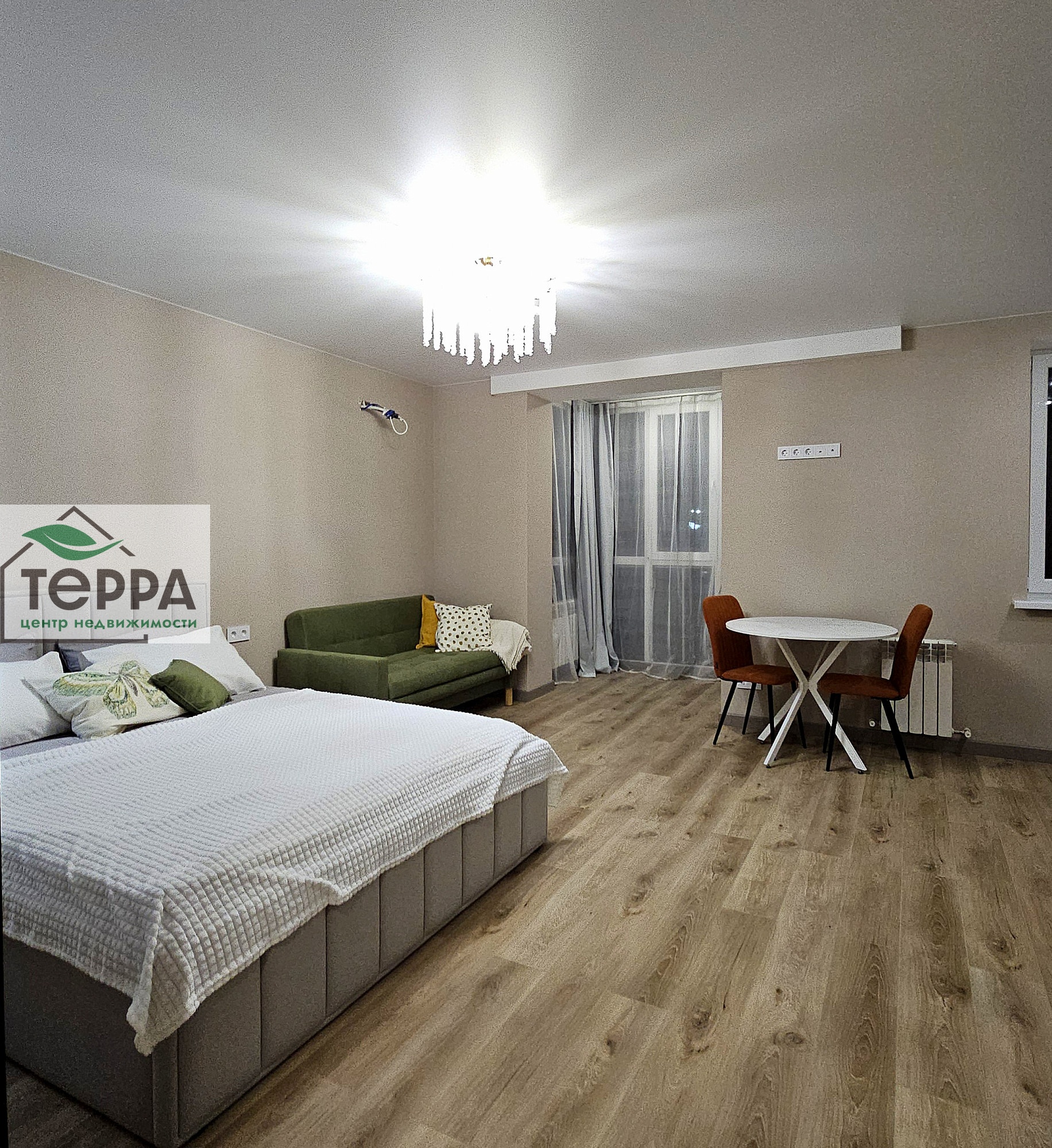 Квартира-студия 31кв.м., новый дом 2024 г.постройки, дизайнерский ремонт, ни кто не проживал. Находится в активном жилом районе рядом с рынком и торговыми центрами, парк Красная горка. Благоустроенный зеленый двор с детской площадкой, парковкой и клумбами роз.