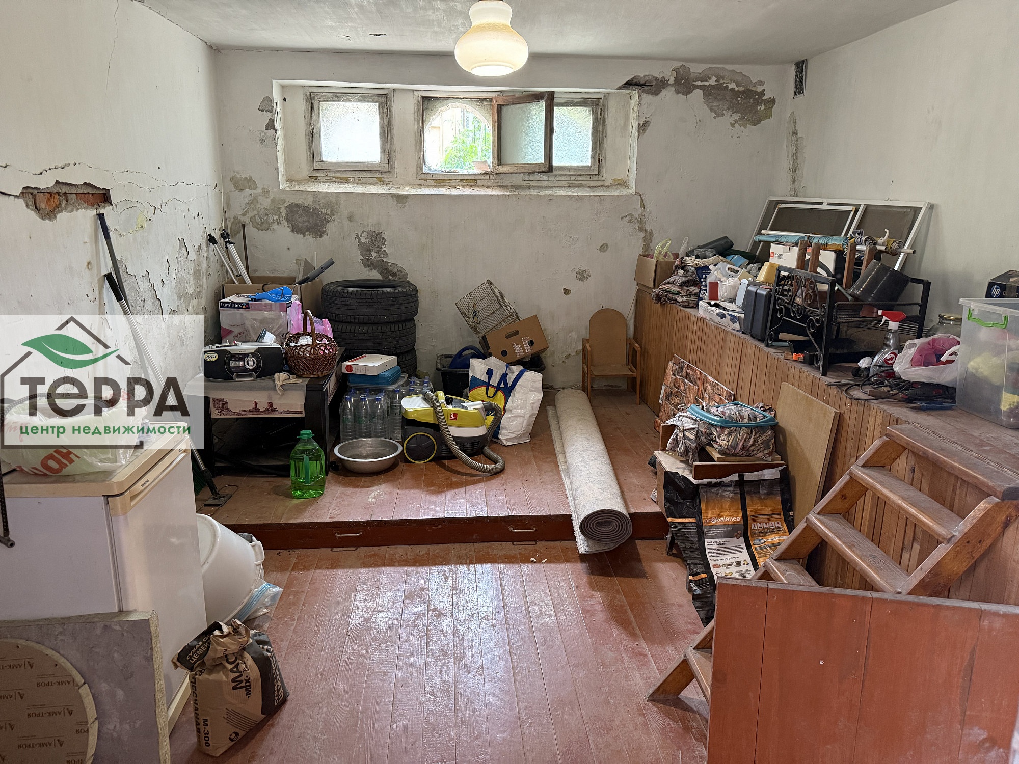Подвал под всем домом- высокий, можно использовать для проживания.
