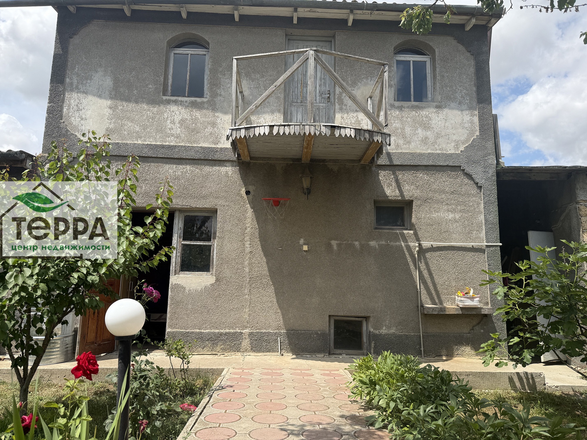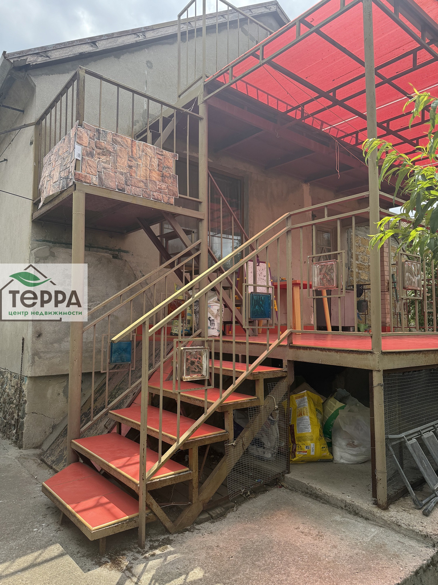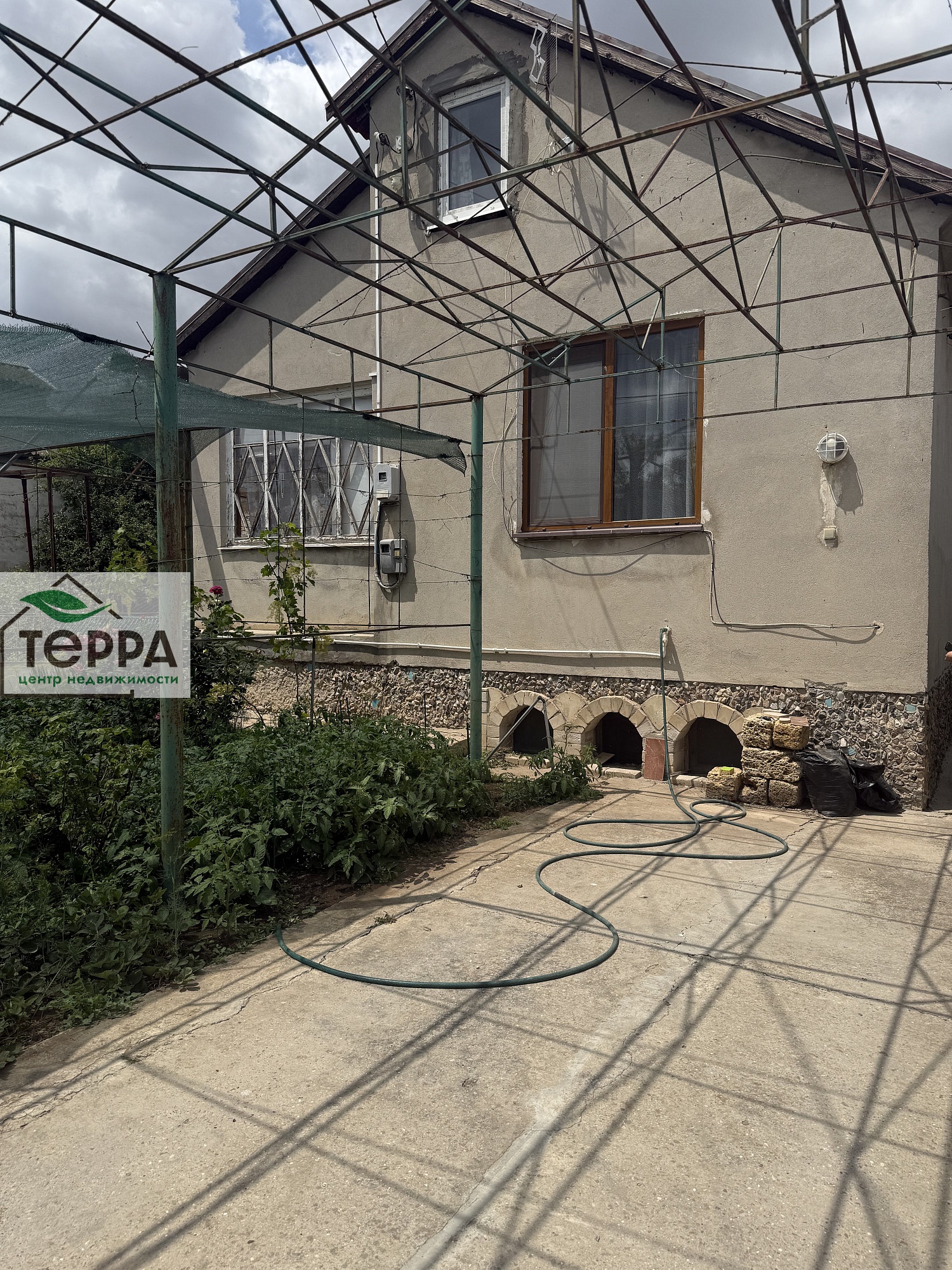 Перед домом терраса с навесом.