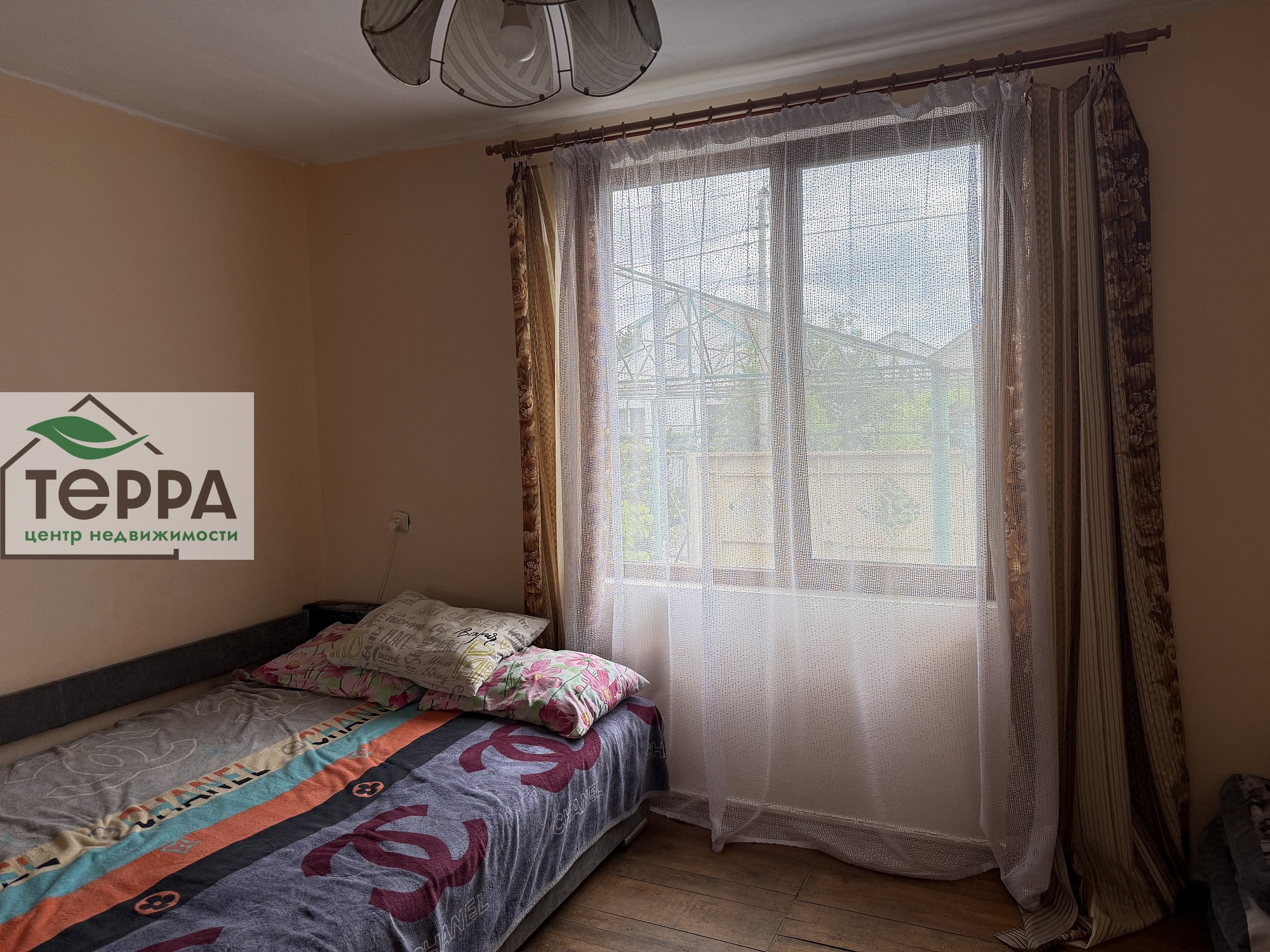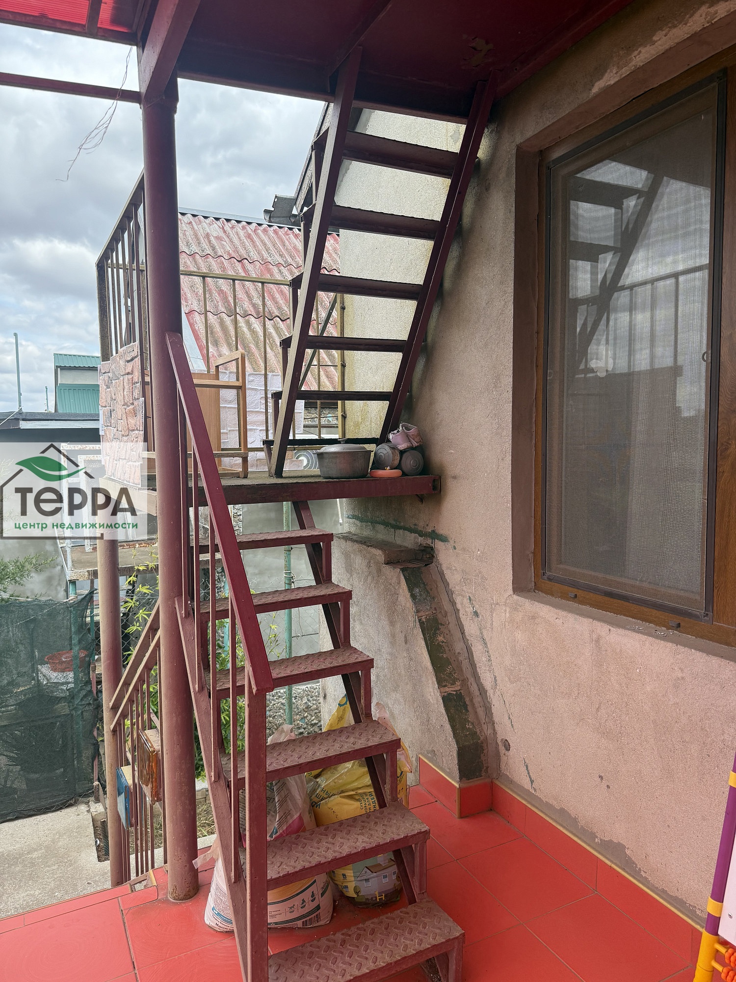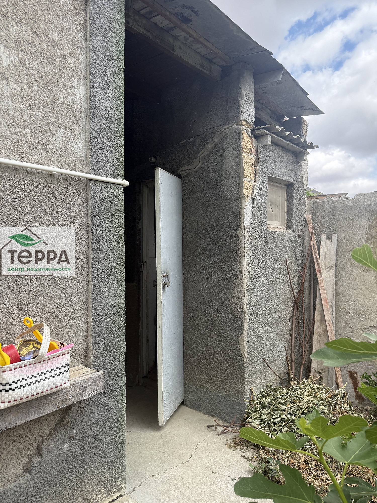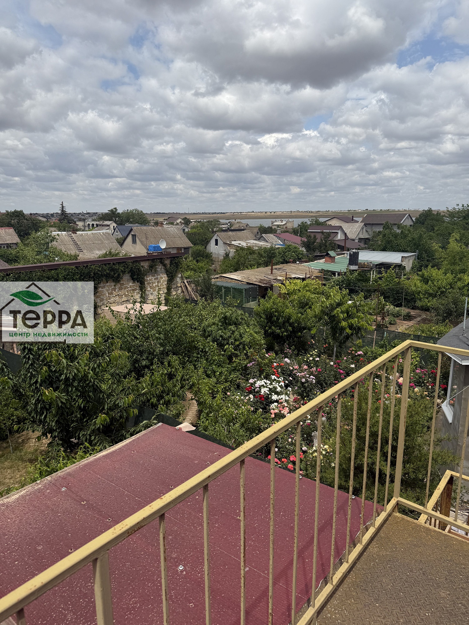 Перед домом терраса с навесом.