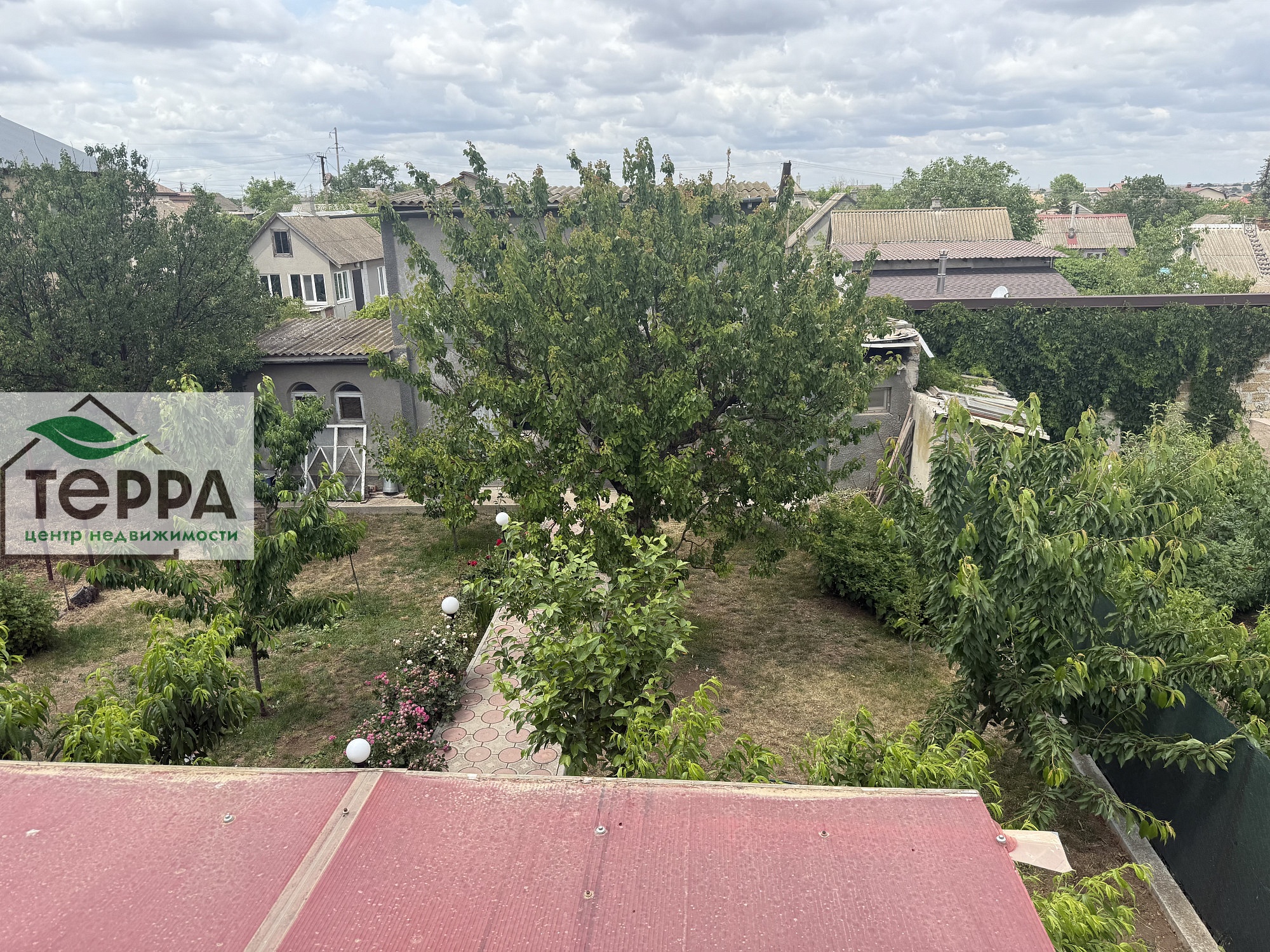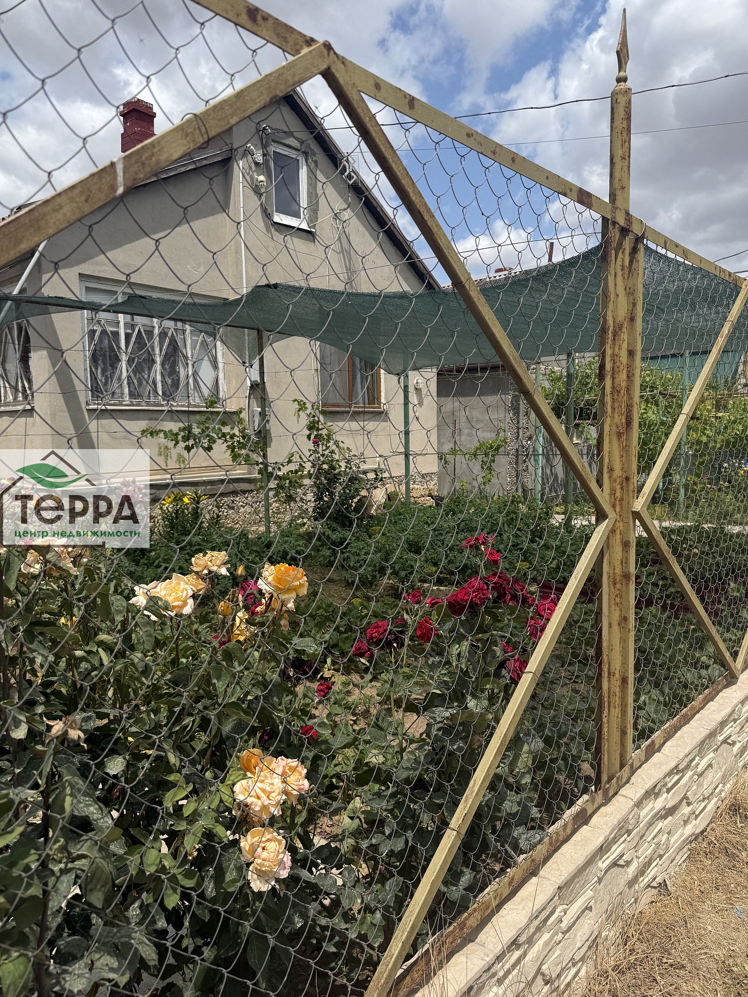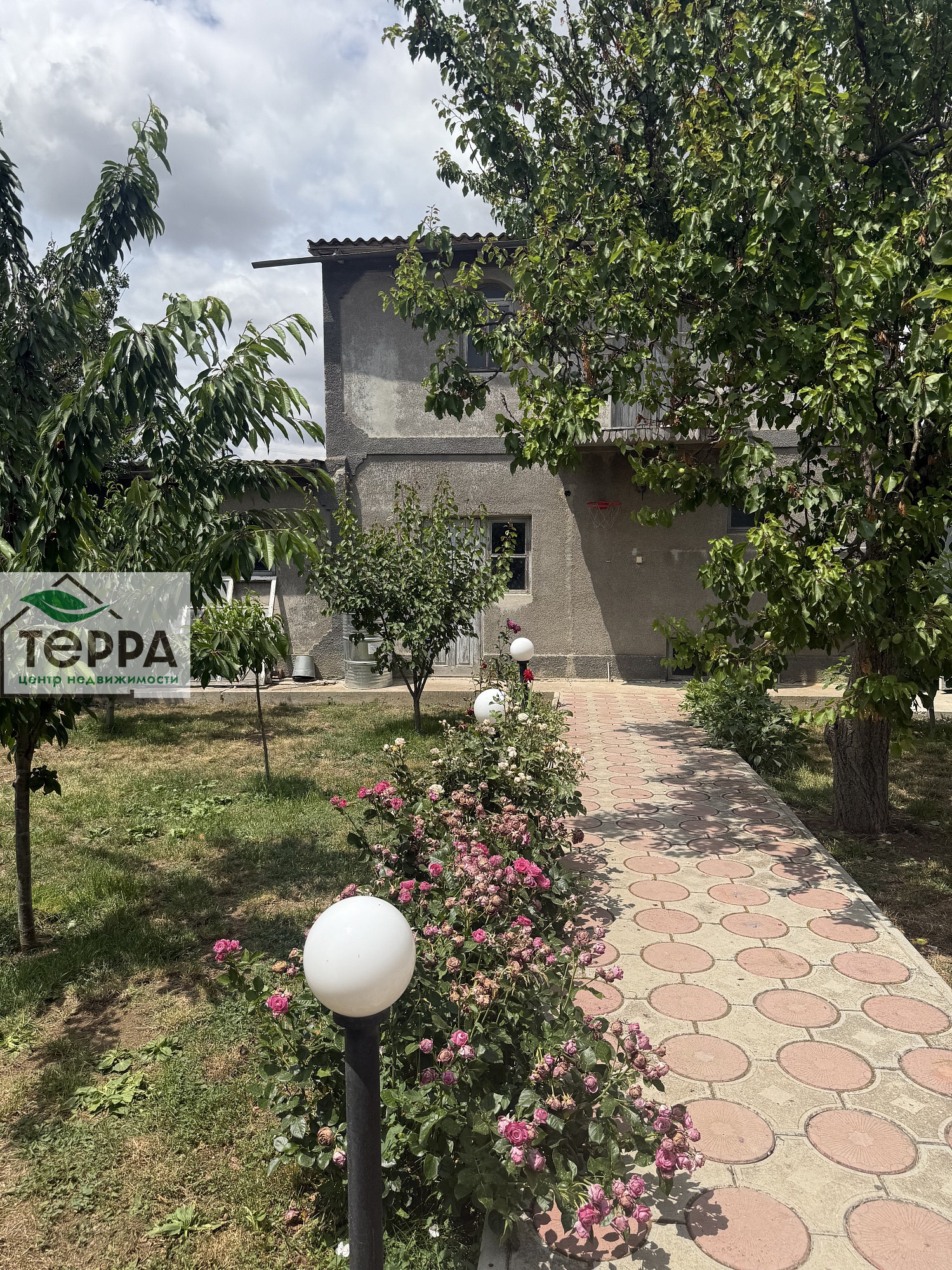 Фруктовый сад, виноград, много кустов роз, участок ухоженный, не запущенный.