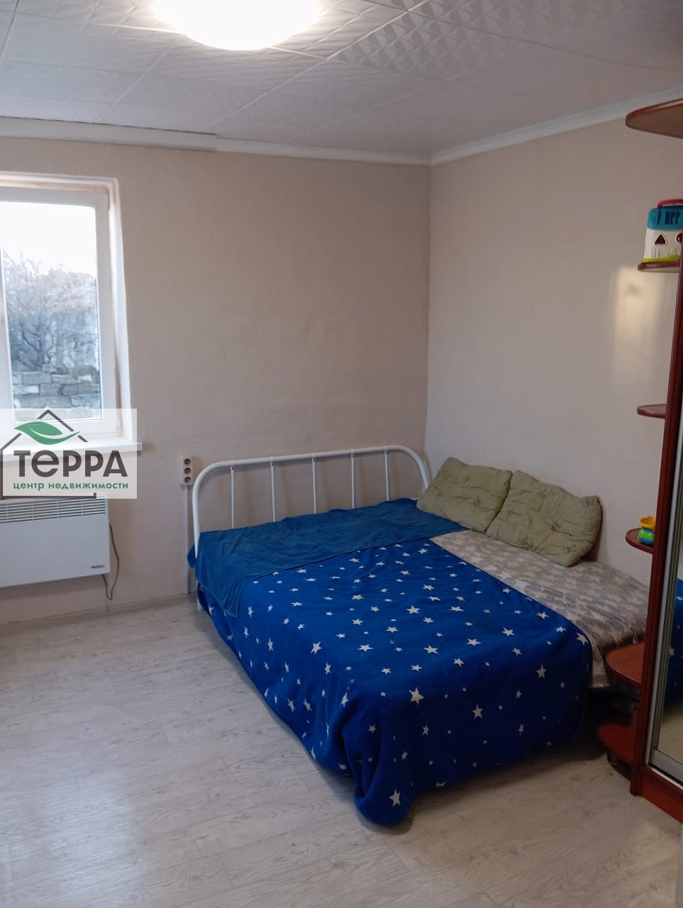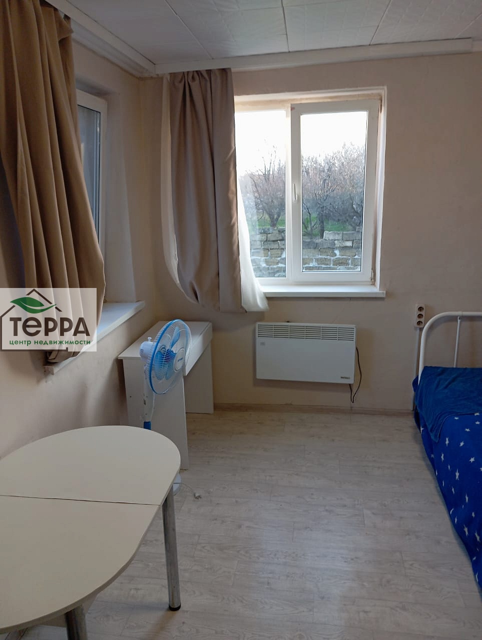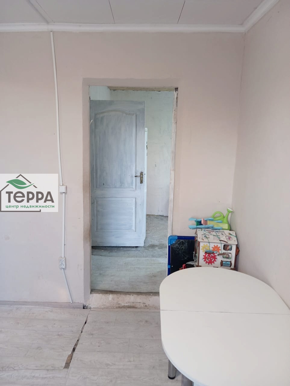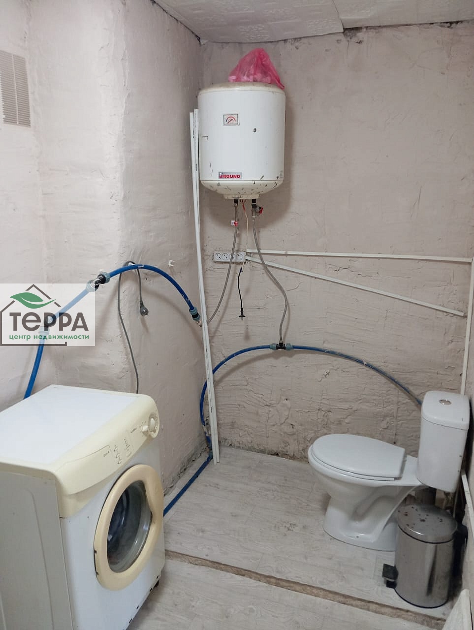 Комната- ремонт сделан полностью, кухня готова под покраску стен, потолок подбит, пол залит. Ванная- штукатурка черновая, пол залит выравнивателем. потолок выровнен.