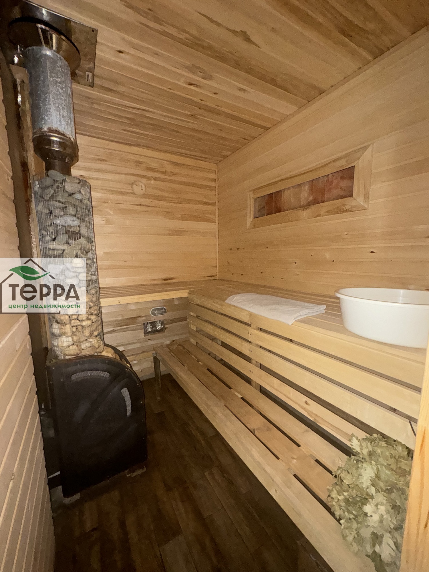 2 Дом-баня полностью готова для проживания, остаётся вся мебель и техника. Проведён газ, стоит газовый котёл, тёплые полы, кондиционер, Wi-Fi.