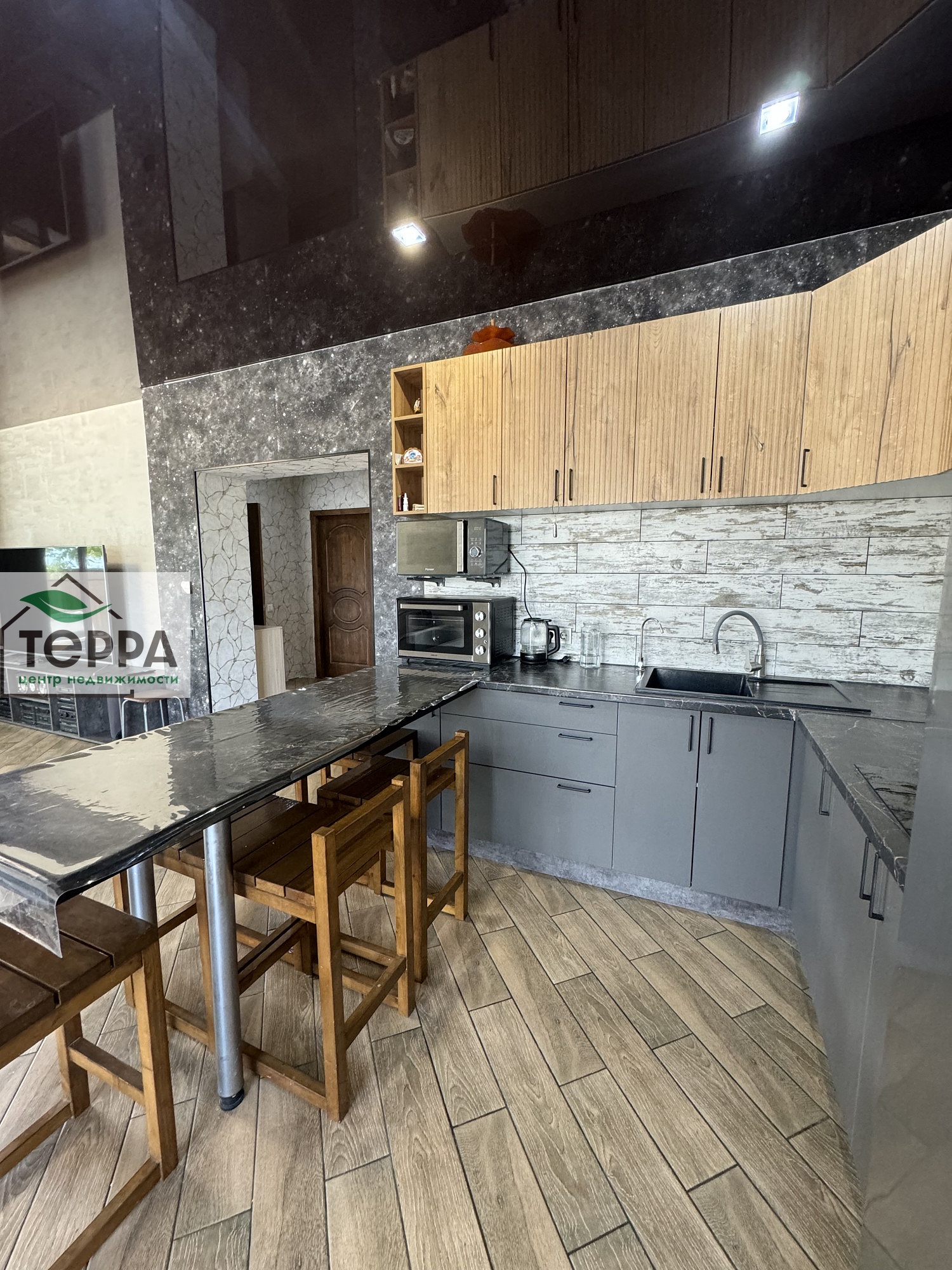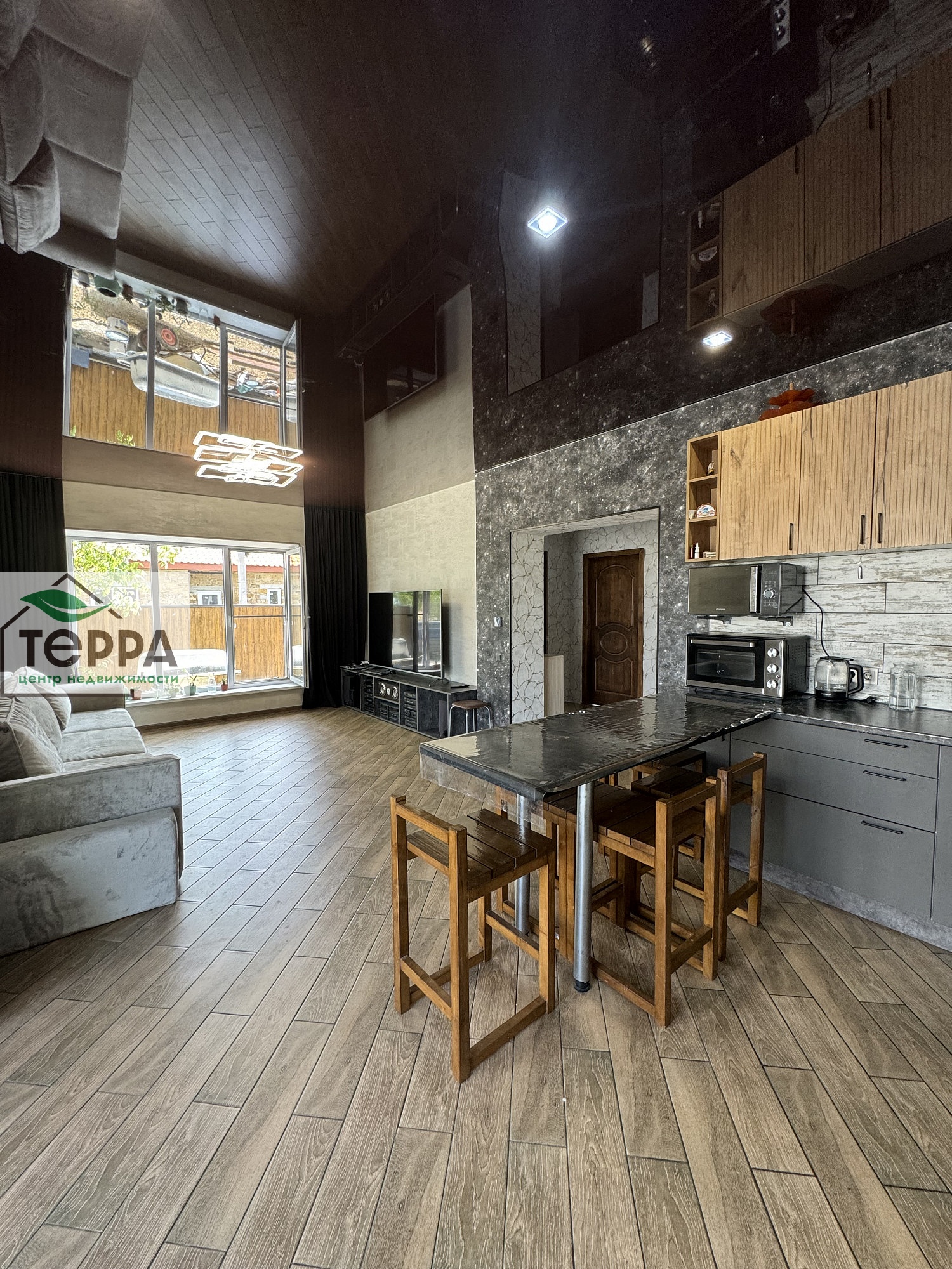 приxожая 5.3 кв.м., холл 11.2 кв.м. ,кухня-гостиная -29.3 кв.м, и c/у 5.3 кв.м.
