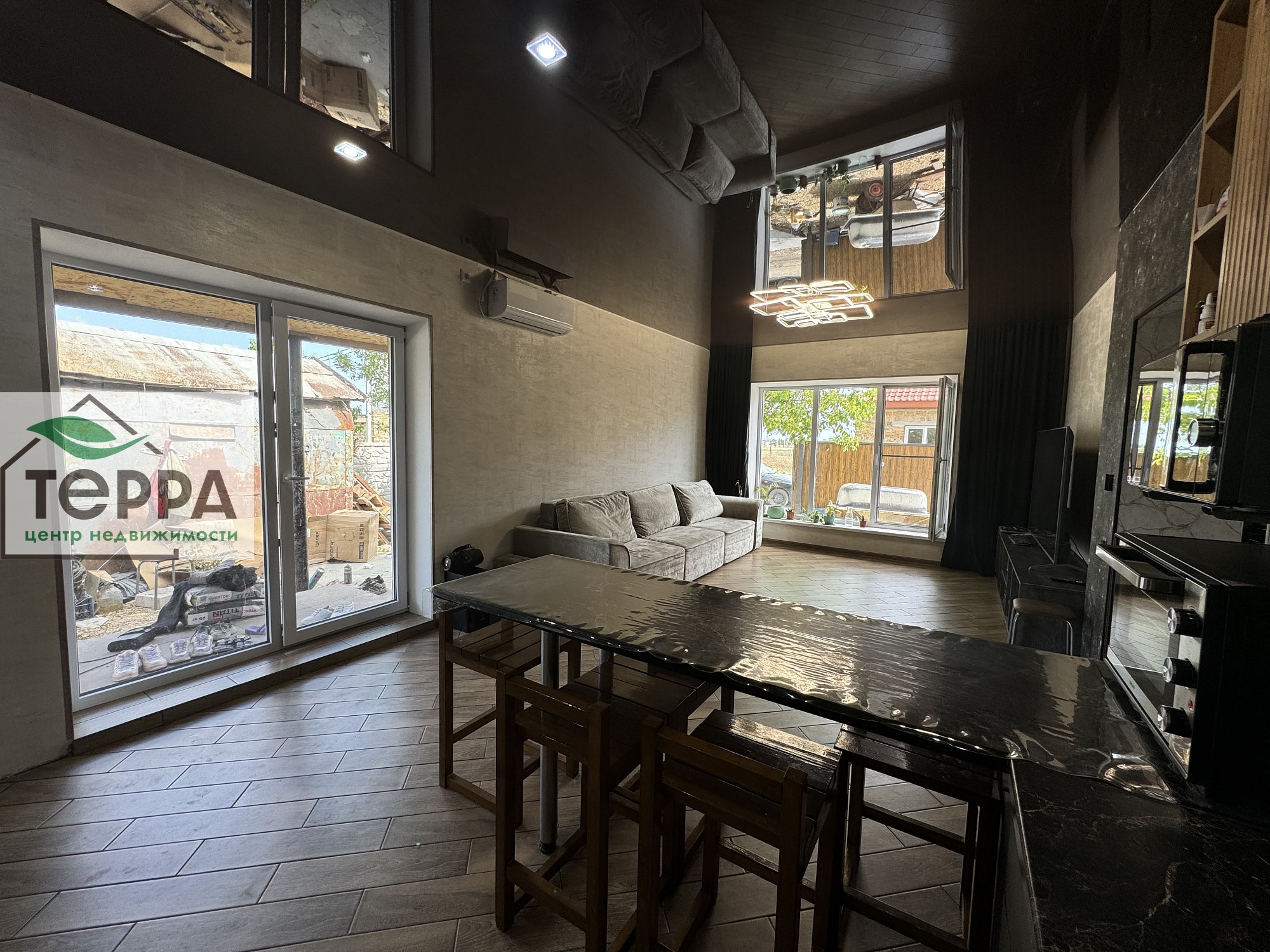 Дом имеет 2 выхода на терассу, На улице 2 крыльца, веранда и отмостка -керамогранит.
