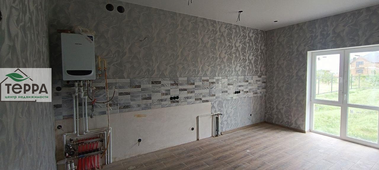 Прихожая, кухня, санузел - на полу качественная плитка, все спальные комнаты - покрытие ламинат, натяжные потолки; плинтус, межкомнатные двери, двухконтурный котел, тротуарная плитка 100 м2 (место под парковку, дорожка ко входу и вокруг дома) забор, калитка + откатные ворота.