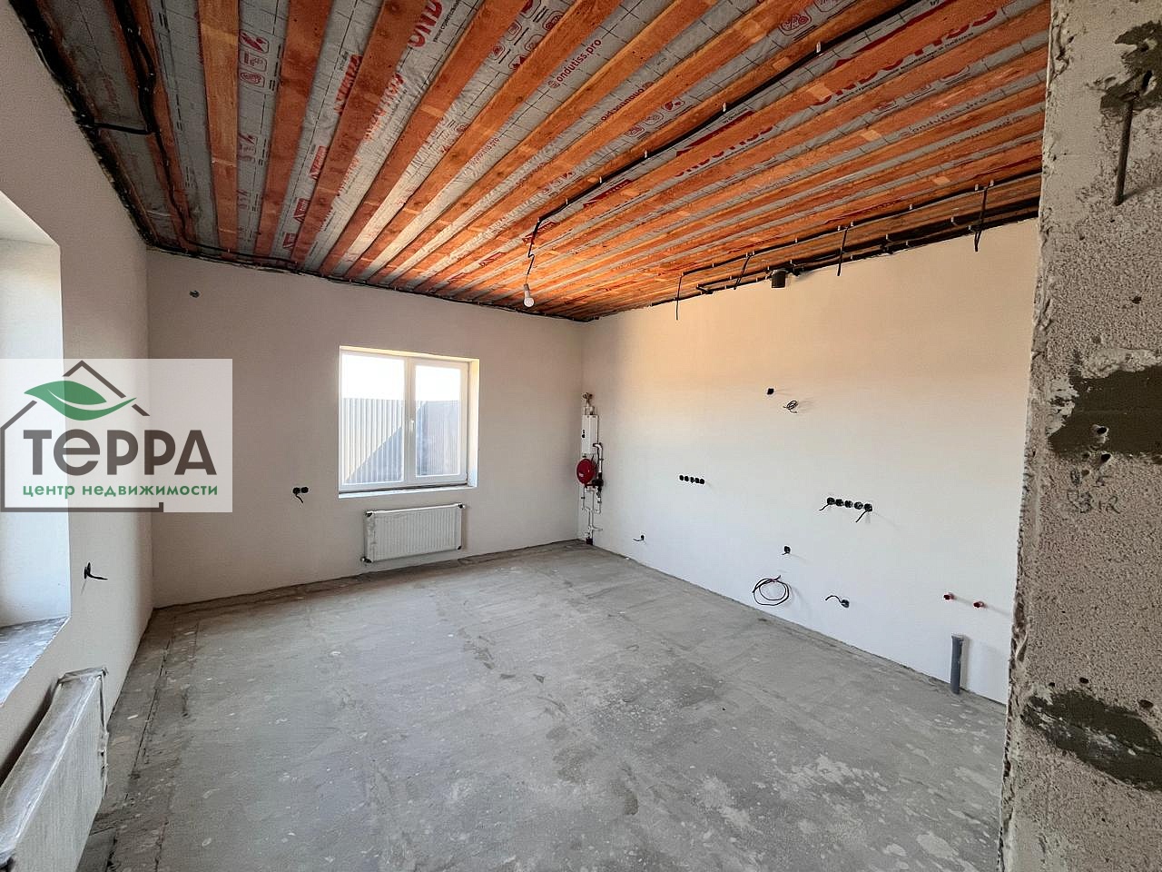 Коммуникации - центральное водоснабжение, электричество, септик, отопление - электрический котел, а в 2026 году по плану будет подведен газ!