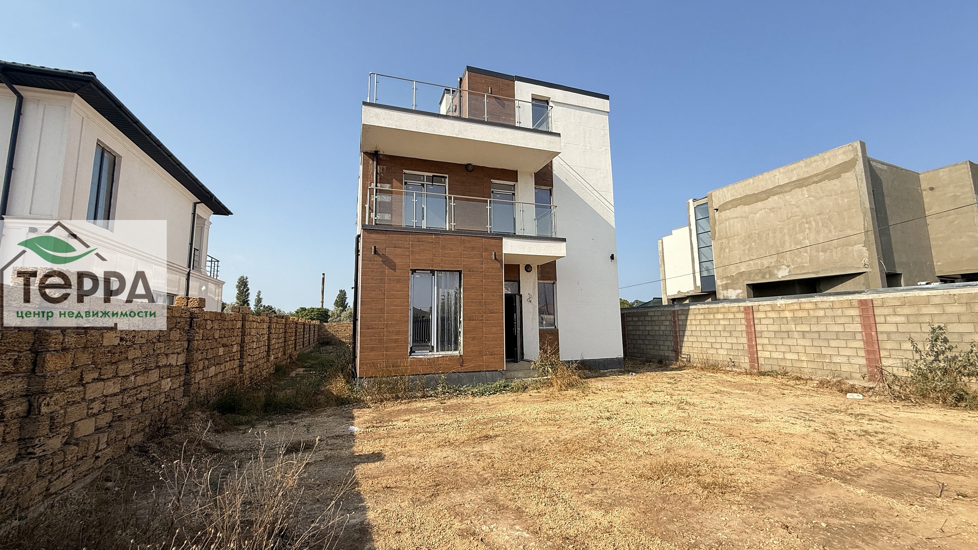 Продается новый дом в стиле Хай-тек. В районе маяка пгт.Заозерное пригород Евпатории. Строение дома в два этажа, с эксплуатированной крышей. С хорошей инфраструктурой: магазин, школа, новый детский садик, амбулатория, отделение банка, паралимпийский центр Эволюция. Общая площадь дома 192.2 кв.м., без отделки, высота потолков 3.1м., есть два выход на лоджию с двух сторон. Во дворе собственный бассейн. В дом заведена вода, электричество, есть локальная канализация. До курортного города Евпатории 6 км.