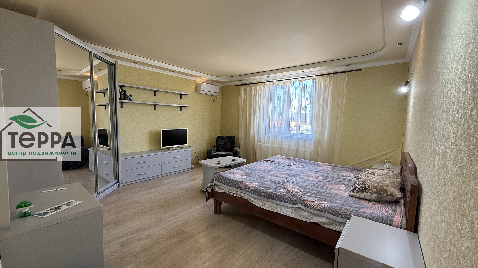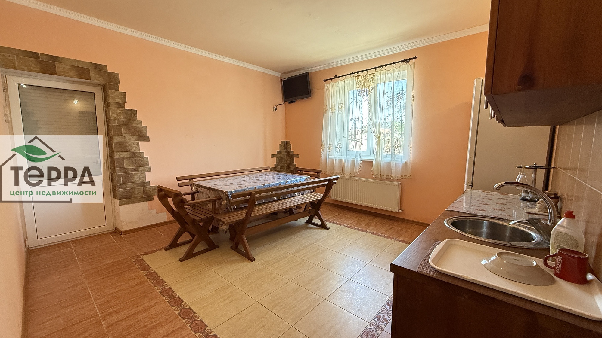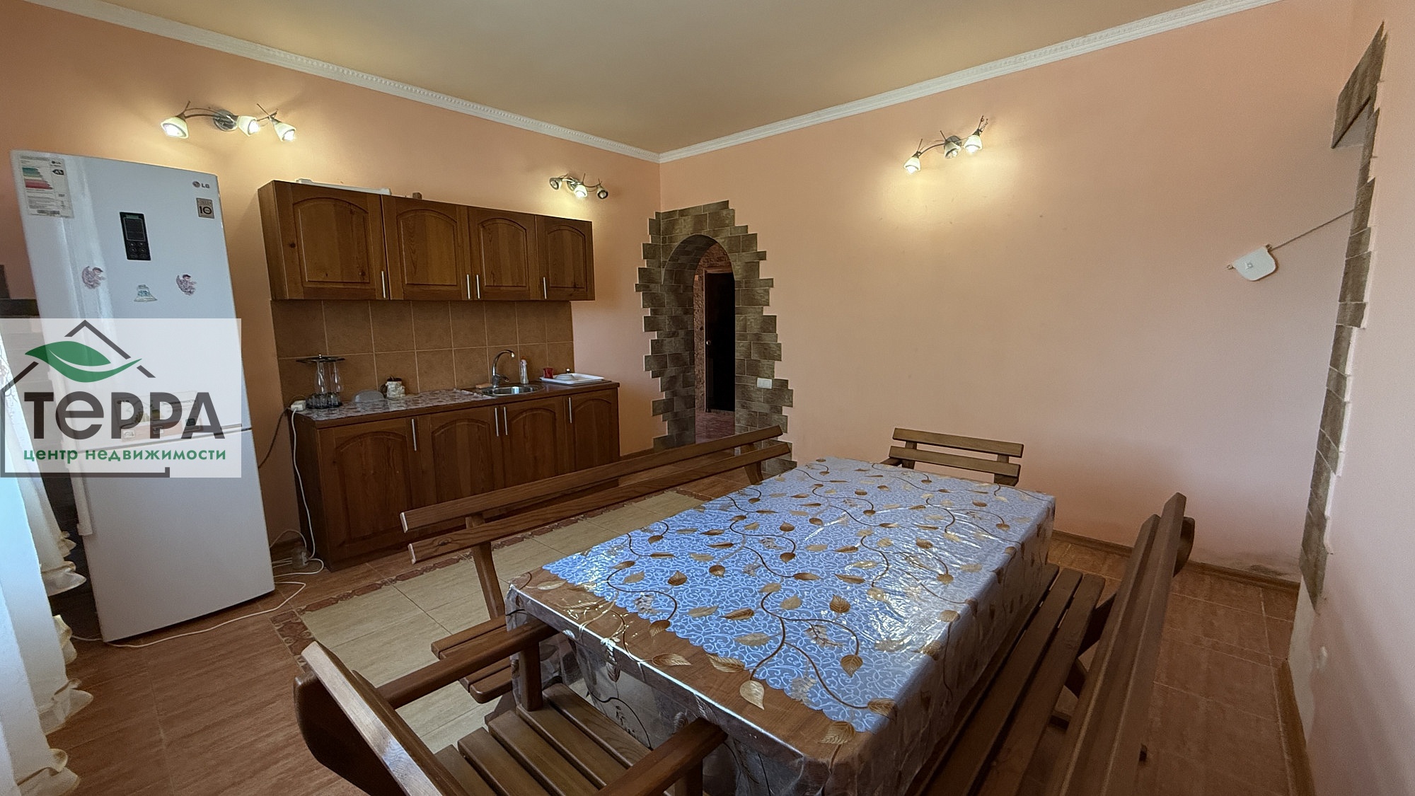 Продается двух этажный дом собственной баней, кухней, спальней на первом этаже и раздельным сан узлом, что имеет большое преимущество в хорошем отдыхе для себя и вашей компании. На второй этаж отдельный вход с улицы по металлической лестнице. Где расположено две спальни, кухня и ванная комната. Двор просторный забетонирован, имеется небольшой огород, где можно разместить беседку или зону для барбекю. Из растительности на участке растет инжирное дерево, туя и три сорта винограда. С двух сторон живут соседи на постоянной основе. До моря 1.5 км