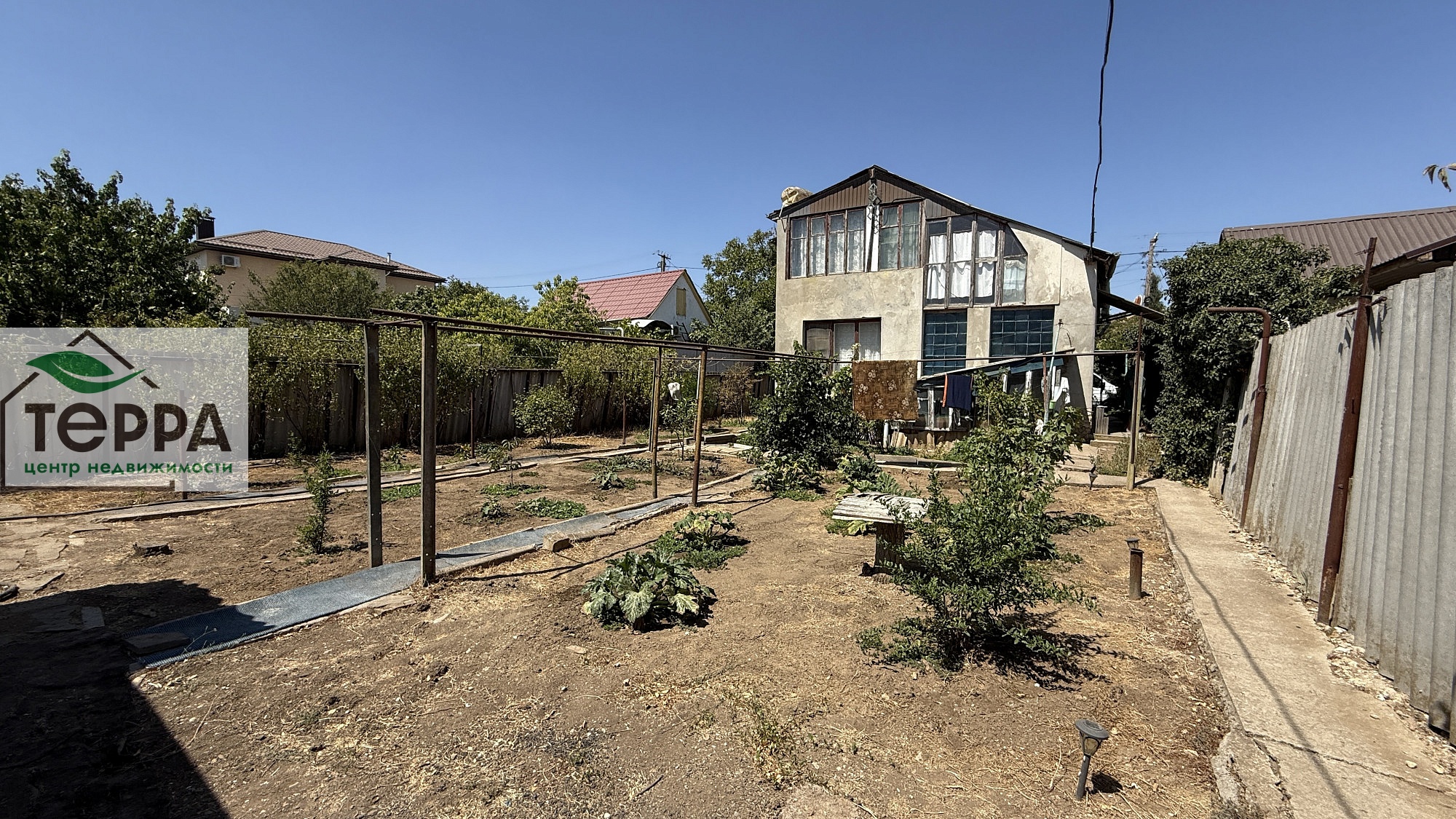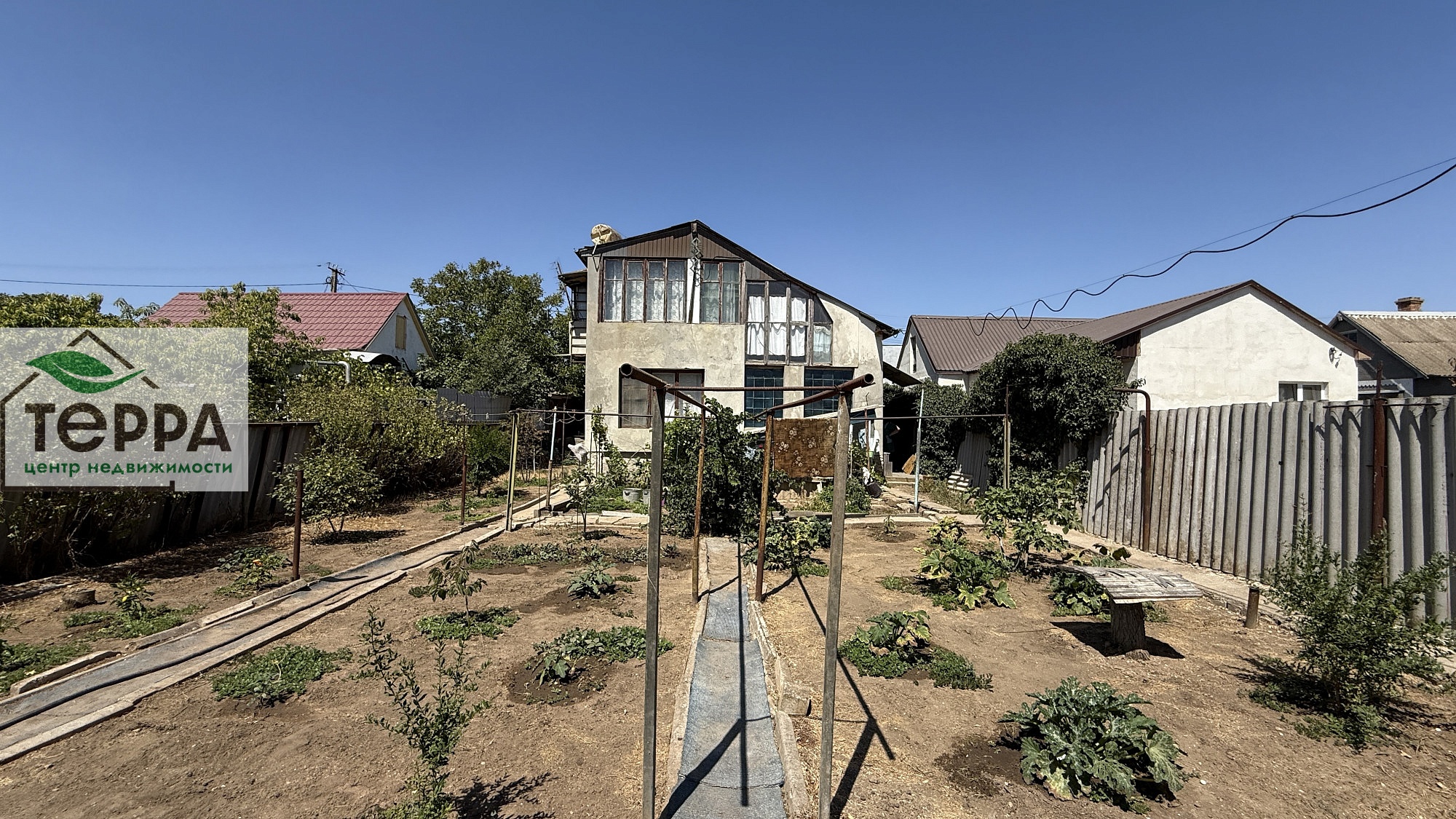 Жилой дом продается в ста метрах возле живописного озера Сасык-Сиваш. Строение дома в три этажа, два жилых, третий этаж цокольный. Есть своя скважина, что обеспечивает наличие воды без перебоя. Отопление в зимнее время обеспечивает дизельный котёл. Но в скором времени можно подвести к дому газ, стояк выведен возле участка. До моря 5-7 минут ходом на машине. Есть хоз постройки для домашнего и огороднического инвентаря. Перед домом можно организовать беседку или ланч зону. Соседи живут круглогодично.