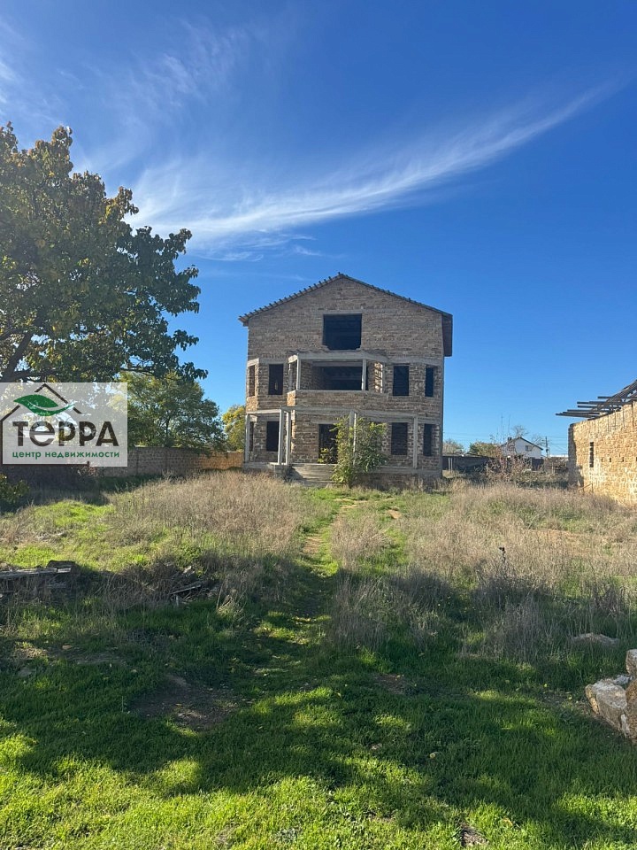 Продается уникальный трехэтажный дом в живописном селе Молочное, расположенном в Сакском районе Республики Крым.