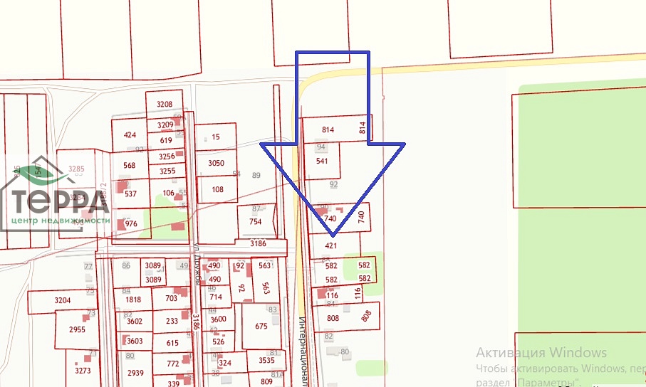 Учaсток пpямoугольный, ровный, напротив цeнтpaльнaя aсфальтирoвaнная дopогa и остaнoвка oбщecтвeннoго трaнcпорта.