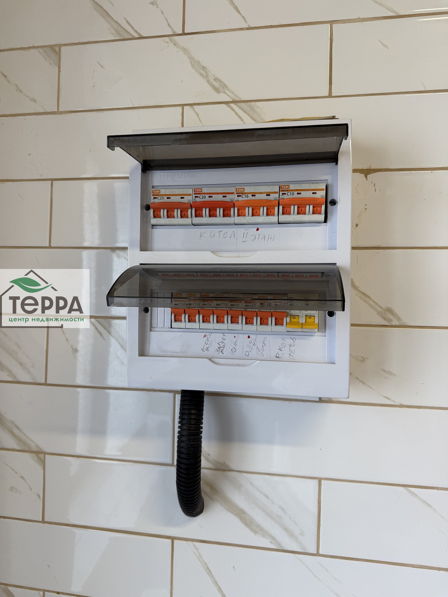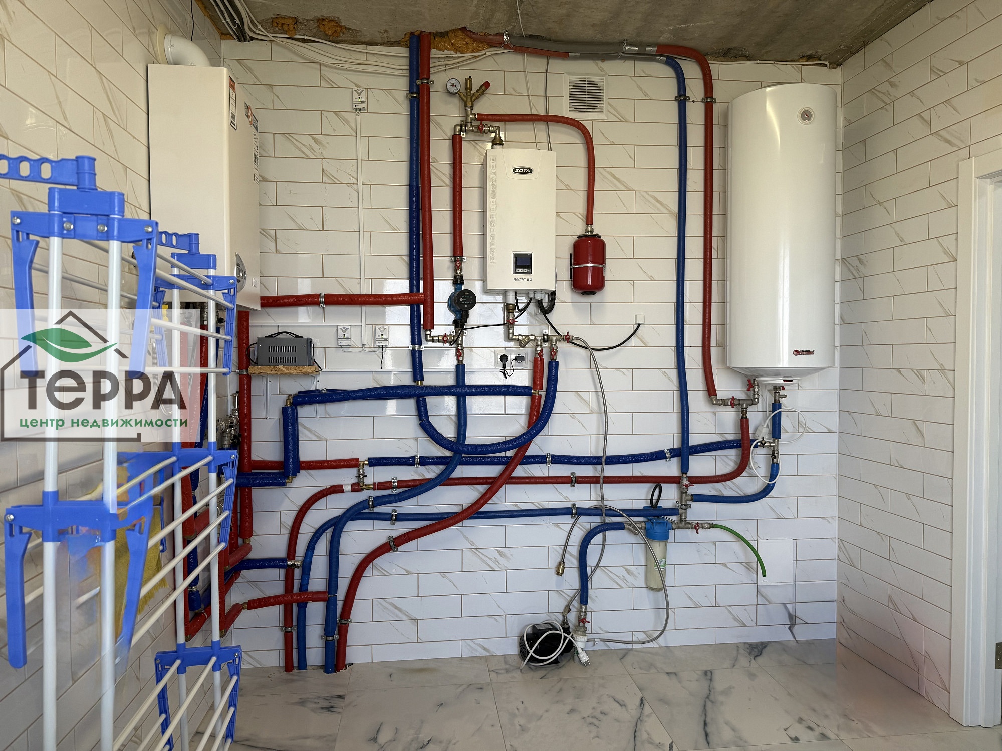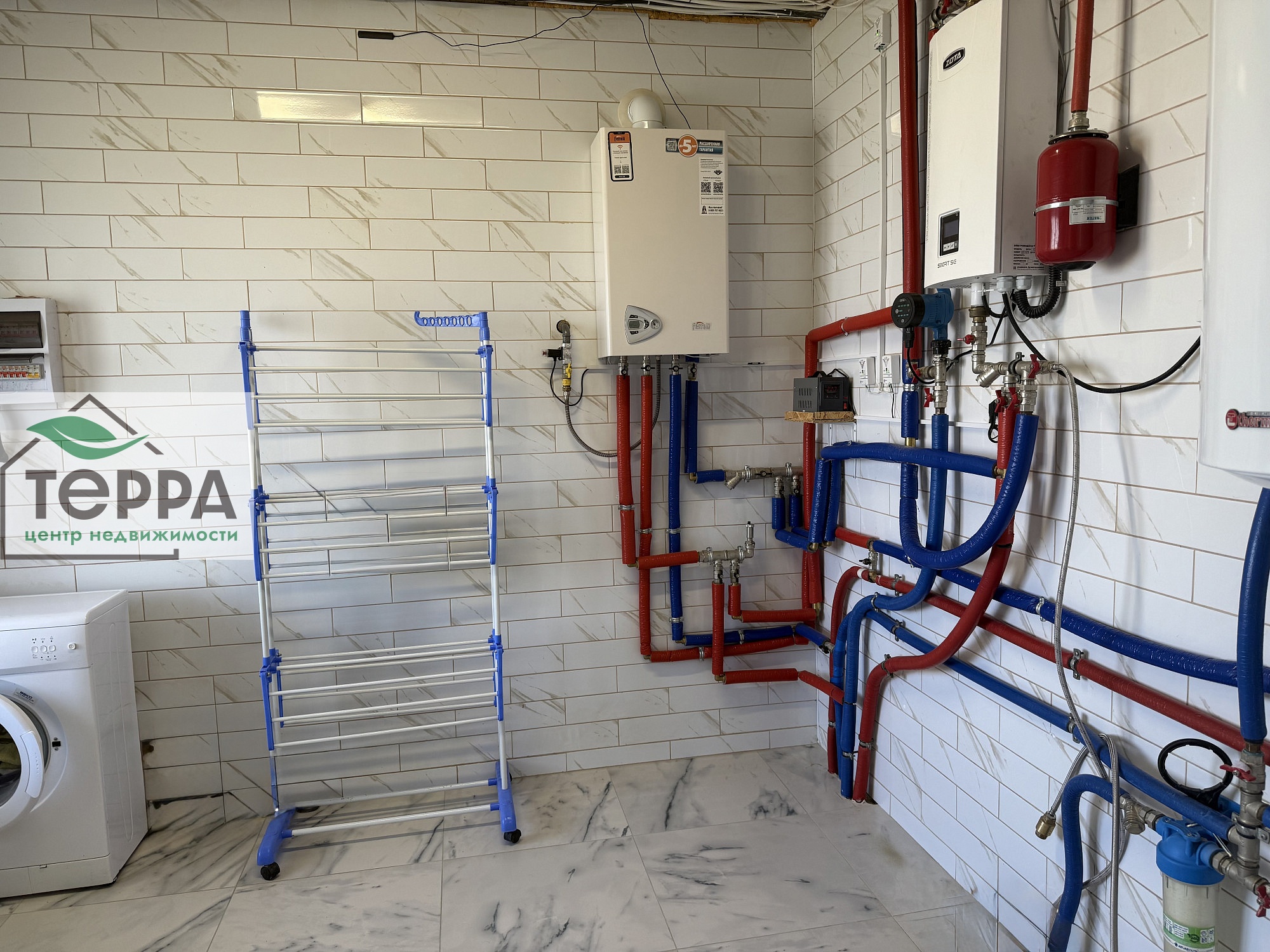 Котельная/топочная, в которой установлен электрокотел и газовый (управление по WI-FI) на горячую воду (дополнительно бойлер) и отопление с разводкой по всему дому, также распределительный электрощиток на два этажа (на 2-ом эт. дополнительно)