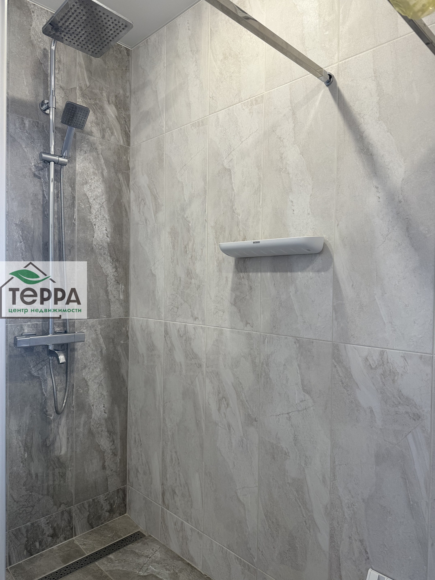 Совмещенный сан.узел в светлых тонах,выложен плиткой.